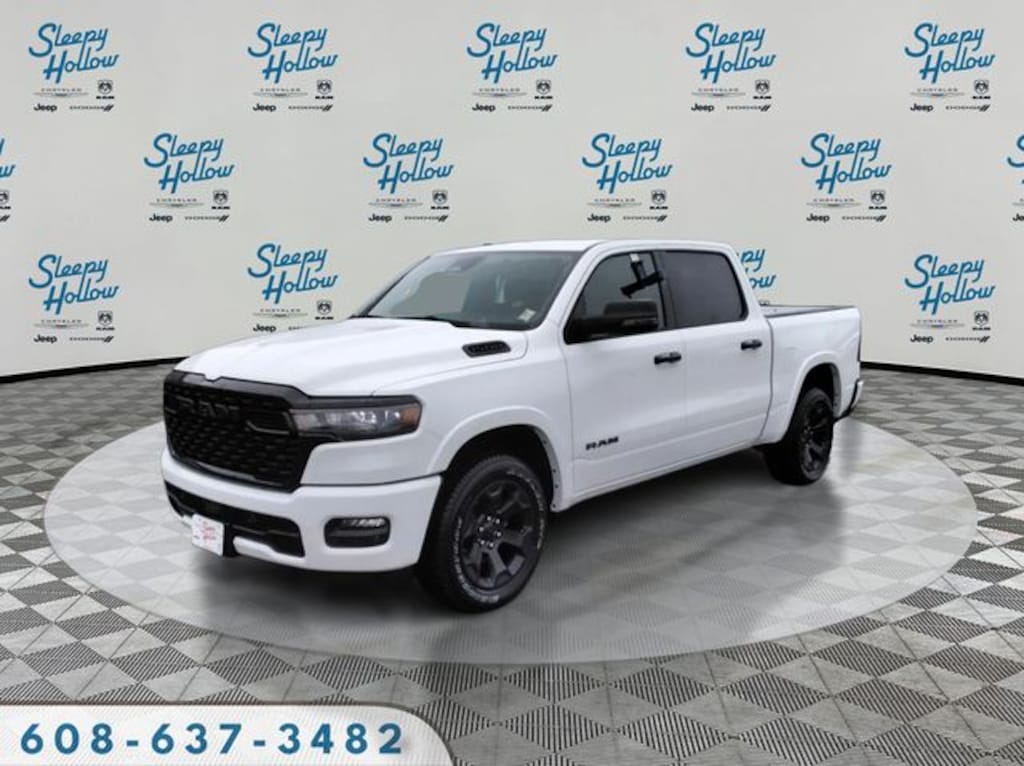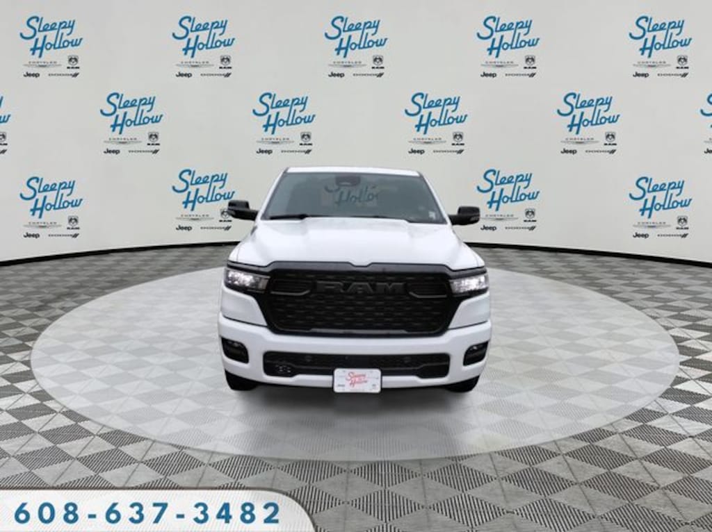 Bright White Clearcoat 2026 Ram 1500 Big Horn/Lone Star 4WD 8-Speed Automatic 3.0L I6 115V Auxiliary Power Outlet, 115V Auxiliary Rear Power Outlet, 12" Touchscreen Display, 2nd Row in Floor Storage Bins, 3 Rear Seat Head Restraints, 4 Way Front Headrests, 4-Wheel Disc Brakes, 400W Inverter, 48V Belt Starter Generator, 4G LTE Wi-Fi Hot Spot, 6 Speakers, 9 Amplified Speakers with Subwoofer, ABS brakes, Accent Color Door Handles, Accent Color Premium Power Mirrors, Accent Color Tailgate Handle, Air Conditioning, Air Conditioning ATC with Dual Zone Control, Alloy wheels, AM/FM radio, Anti-Spin Differential Rear Axle, Apple CarPlay, Apple CarPlay/Android Auto, Auto High-beam Headlights, Auto Power-Folding Mirrors, Auto-Dimming Exterior Driver Mirror, Auto-Dimming Rear-View Mirror, Big Horn Level 2 Equipment Group, Black Exterior Mirrors, Black Exterior Truck Badging, Black Headlamp Bezels, Black Interior Accents, Black Painted Exterior Mirrors Caps, Black Premium Power Mirrors, Black Tail Lamp Bezels, Body Color Fender Flares, Body Color Front Bumper, Body Color Rear Bumper with Step Pads, Brake assist, Bucket Seats, Bumpers: chrome, Center Console Parts Module, Cloth Bucket Seats, Cluster 12" TFT Color Display, Cluster 7.0" TFT Color Display, Compass, Configurable Drive Mode, Connected Travel and Traffic Services, Connectivity - US/Canada, Convex Wide-Angle Exterior Mirror Insert, Delay-off headlights, Deluxe Cloth Bucket Seats, Disassociated Touchscreen Display, Driver door bin, Dual Exhaust with Black Tips, Dual front impact airbags, Dual front side impact airbags, Electronic Stability Control, Exterior Mirrors Courtesy Lamps, Exterior Mirrors with Heating Element, Exterior Mirrors with Supplemental Signals, Front anti-roll bar, Front Bucket Seats, Front Center Armrest w/Storage, Front fog lights, Front License Plate Bracket, Front reading lights, Front Seat Back Map Pockets, Front wheel independent suspension, Full Length Floor Console, Fully automatic headlights, Global Telematics Box Module, Glove Box Lamp, Google Android Auto, GPS Antenna Input, GPS Navigation, Grille Black Surround Black Mesh, HD Radio, Heated door mirrors, Heated Front Seats, Heated Steering Wheel, Illuminated entry, Integrated Center Stack Radio, Integrated Voice Command with Bluetooth, Leather Wrapped Steering Wheel, LED Dome Lamp with on/Off Switch, LED Footwell Lighting, Low tire pressure warning, Manual Adjust 4-Way Driver Seat, Manual Adjust 4-Way Front Passenger Seat, Manual Folding Exterior Mirrors, Media Hub with 2 Charge Only USBs, MOPAR Front and Rear Rubber Floor Mats, Night Edition, Occupant sensing airbag, Outside temperature display, Overhead airbag, Overhead console, Overhead LED Lamps, Panic alarm, ParkView Rear Back-Up Camera, Passenger door bin, Passenger vanity mirror, Power 2-Way Driver Lumbar Adjust, Power Adjust 8-Way Driver Seat, Power Adjustable Pedals, Power door mirrors, Power steering, Power windows, Premium Overhead Console, Quick Order Package 21Z Big Horn, Radio data system, Radio: Uconnect 5 Navigation with 12.0" Display, Radio: Uconnect 5 W with 8.4" Display, RAM Grille Badge - Black, RAM Grille Badge - Chrome, Rear 60/40 Folding Seat, Rear anti-roll bar, Rear Center Armrest, Rear Power Sliding Window, Rear step bumper, Rear Wheelhouse Liners, Rear Window Defroster, Remote keyless entry, Remote Tailgate Release, Security Alarm, SiriusXM Radio Service, SiriusXM with 360L, Speed control, Steering Wheel Mounted Audio Controls, Sun Visors with Illuminated Vanity Mirrors, Supplier Part Tracking (J-1), Tachometer, Telescoping steering wheel, Tilt steering wheel, Traction control, Trailer Brake Control, Trip computer, Universal Garage Door Opener, USB Host Flip, Variably intermittent wipers, Voltmeter, Wheels: 20" x 9.0" Aluminum Painted Clad.