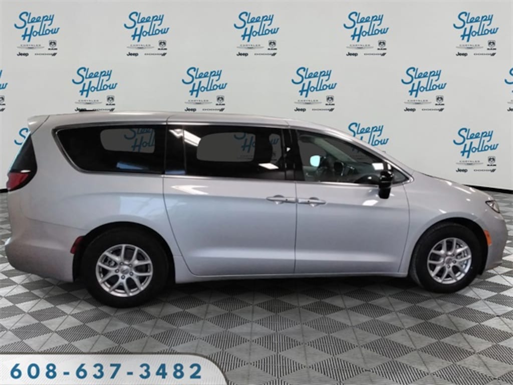 Silver Mist Clearcoat 2024 Chrysler Pacifica Touring L FWD 9-Speed 948TE Automatic 3.6L V6 24V VVT 10.1" Touchscreen Display, 17" x 7.0" Aluminum Wheels, 3.25 Axle Ratio, 3rd row seats: split-bench, 4-Wheel Disc Brakes, 6 Speakers, ABS brakes, Air Conditioning, Alloy wheels, AM/FM radio: SiriusXM, Apple CarPlay, Apple CarPlay/Android Auto, Automatic temperature control, Black Seats, Brake assist, Bumpers: body-color, Caprice Leatherette Bucket Seats, Compass, Delay-off headlights, Disassociated Touchscreen Display, Driver door bin, Driver vanity mirror, Driver's Seat Mounted Armrest, Dual front impact airbags, Dual front side impact airbags, Electronic Stability Control, Four wheel independent suspension, Front anti-roll bar, Front Bucket Seats, Front dual zone A/C, Front fog lights, Front reading lights, Fully automatic headlights, Google Android Auto, GPS Antenna Input, Heated door mirrors, Heated front seats, Heated steering wheel, Illuminated entry, Integrated Active Noise Cancellation, Integrated Center Stack Radio, Knee airbag, Low tire pressure warning, Manufacturer's Statement of Origin, Memory seat, Occupant sensing airbag, Outside temperature display, Overhead airbag, Overhead console, Panic alarm, ParkView Rear Back-Up Camera, Passenger door bin, Passenger seat mounted armrest, Passenger vanity mirror, Power door mirrors, Power driver seat, Power Liftgate, Power steering, Power windows, Quick Order Package 27L, Radio data system, Radio: Uconnect 5 w/10.1" Display, Rain sensing wipers, Rear air conditioning, Rear reading lights, Rear window defroster, Rear window wiper, Reclining 3rd row seat, Remote keyless entry, Security system, Speed control, Split folding rear seat, Spoiler, Steering wheel mounted audio controls, Tachometer, Telescoping steering wheel, Tilt steering wheel, Touring Suspension, Traction control, Trip computer, Turn signal indicator mirrors, USB Host Flip, Variably intermittent wipers, Voltmeter.