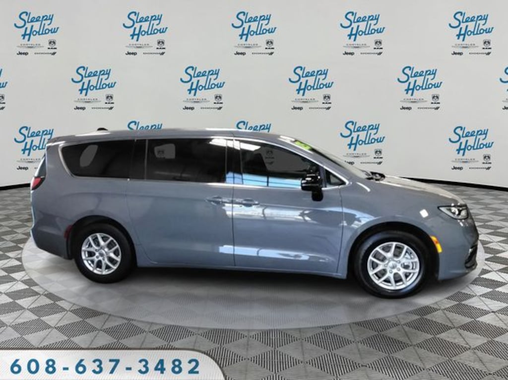 Ceramic Gray Clearcoat 2025 Chrysler Pacifica Select FWD 9-Speed 948TE Automatic 3.6L V6 24V VVT 10.1" Touchscreen Display, 17" x 7.0" Aluminum Wheels, 3.25 Axle Ratio, 3rd row seats: split-bench, 4-Wheel Disc Brakes, 4G LTE Wi-Fi Hot Spot, 6 Speakers, ABS brakes, Air Conditioning, Alloy wheels, AM/FM radio: SiriusXM, Apple CarPlay, Apple CarPlay/Android Auto, Auto-dimming Rear-View mirror, Automatic temperature control, Black Seats, Brake assist, Bumpers: body-color, Caprice Leatherette Bucket Seats, Compass, Delay-off headlights, Disassociated Touchscreen Display, Driver door bin, Driver vanity mirror, Driver's Seat Mounted Armrest, Dual front impact airbags, Dual front side impact airbags, Electronic Stability Control, Emergency communication system: Chrysler Connect, For Details, Visit DriveUconnect.com, Four wheel independent suspension, Front anti-roll bar, Front Bucket Seats, Front dual zone A/C, Front Fascia Air Deflectors, Front fog lights, Front reading lights, Fully automatic headlights, Garage door transmitter, Google Android Auto, GPS Antenna Input, Heated door mirrors, Heated front seats, Heated steering wheel, Illuminated entry, Integrated Active Noise Cancellation, Integrated Center Stack Radio, Knee airbag, Low tire pressure warning, Manufacturer's Statement of Origin, Memory seat, Occupant sensing airbag, Outside temperature display, Overhead airbag, Overhead console, Panic alarm, ParkView Rear Back-Up Camera, Passenger door bin, Passenger seat mounted armrest, Passenger vanity mirror, Power door mirrors, Power driver seat, Power Liftgate, Power steering, Power windows, Quick Order Package 27L, Radio data system, Radio: Uconnect 5 with 10.1" Display, Rain sensing wipers, Rear air conditioning, Rear reading lights, Rear window defroster, Rear window wiper, Reclining 3rd row seat, Remote keyless entry, Security system, SiriusXM Guardian - Included Trial (B), Speed control, Split folding rear seat, Spoiler, Steering wheel mounted audio controls, Tachometer, Telescoping steering wheel, Tilt steering wheel, Touring Suspension, Traction control, Trip computer, Turn signal indicator mirrors, USB Host Flip, Variably intermittent wipers, Voltmeter.