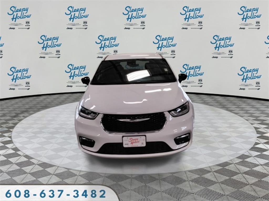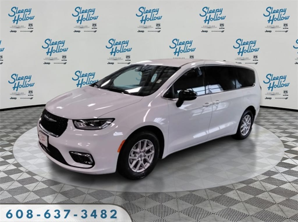 Bright White Clearcoat 2025 Chrysler Pacifica Select FWD 9-Speed 948TE Automatic 3.6L V6 24V VVT 10.1" Touchscreen Display, 17" x 7.0" Aluminum Wheels, 3.25 Axle Ratio, 3rd row seats: split-bench, 4-Wheel Disc Brakes, 4G LTE Wi-Fi Hot Spot, 6 Speakers, ABS brakes, Air Conditioning, Alloy wheels, AM/FM radio: SiriusXM, Apple CarPlay, Apple CarPlay/Android Auto, Auto-dimming Rear-View mirror, Automatic temperature control, Black Seats, Brake assist, Bumpers: body-color, Caprice Leatherette Bucket Seats, Compass, Delay-off headlights, Disassociated Touchscreen Display, Driver door bin, Driver vanity mirror, Driver's Seat Mounted Armrest, Dual front impact airbags, Dual front side impact airbags, Electronic Stability Control, Emergency communication system: Chrysler Connect, For Details, Visit DriveUconnect.com, Four wheel independent suspension, Front anti-roll bar, Front Bucket Seats, Front dual zone A/C, Front Fascia Air Deflectors, Front fog lights, Front reading lights, Fully automatic headlights, Garage door transmitter, Google Android Auto, GPS Antenna Input, Heated door mirrors, Heated front seats, Heated steering wheel, Illuminated entry, Integrated Active Noise Cancellation, Integrated Center Stack Radio, Knee airbag, Low tire pressure warning, Manufacturer's Statement of Origin, Memory seat, Occupant sensing airbag, Outside temperature display, Overhead airbag, Overhead console, Panic alarm, ParkView Rear Back-Up Camera, Passenger door bin, Passenger seat mounted armrest, Passenger vanity mirror, Power door mirrors, Power driver seat, Power Liftgate, Power steering, Power windows, Quick Order Package 27L, Radio data system, Radio: Uconnect 5 with 10.1" Display, Rain sensing wipers, Rear air conditioning, Rear reading lights, Rear window defroster, Rear window wiper, Reclining 3rd row seat, Remote keyless entry, Security system, SiriusXM Guardian - Included Trial (B), Speed control, Split folding rear seat, Spoiler, Steering wheel mounted audio controls, Tachometer, Telescoping steering wheel, Tilt steering wheel, Touring Suspension, Traction control, Trip computer, Turn signal indicator mirrors, USB Host Flip, Variably intermittent wipers, Voltmeter.