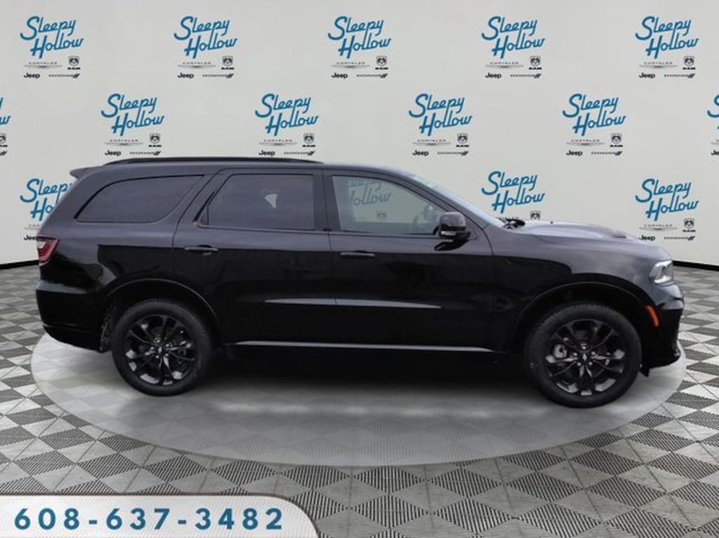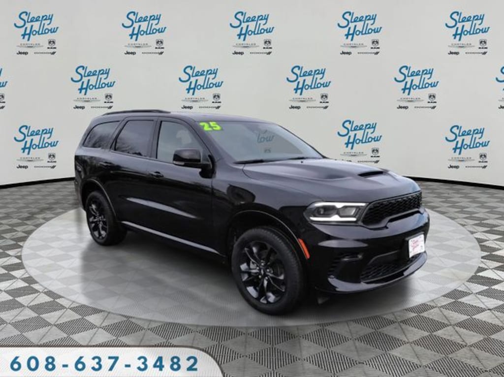 DB Black Crystal Clearcoat 2025 Dodge Durango GT AWD 8-Speed Automatic 3.6L V6 24V VVT AWD, 115V Auxiliary Power Outlet, 180 Amp Alternator, 2nd Row Fold/Tumble Captain Chairs, 2nd Row Mini Console w/Cupholders, 2nd Row Seat Mounted Inboard Armrests, 3.45 Rear Axle Ratio, 3rd Row Floor Mat & Mini Console, 3rd row seats: split-bench, 4-Wheel Disc Brakes, 506 Watt Amplifier, 6 Speakers, 6-Passenger Seating, 7 & 4 Pin Wiring Harness, 9 Alpine Amplified Speakers w/Subwoofer, ABS brakes, Adaptive Cruise Control w/Stop, Advanced Brake Assist, Air Conditioning, Alloy wheels, AM/FM radio: SiriusXM w/360L, Apple CarPlay/Android Auto, Auto High Beam Headlamp Control, Auto-Dimming Exterior Driver Mirror, Auto-dimming Rear-View mirror, Automatic temperature control, Black Roof Rails, Blacktop Package, Blind Spot w/Trailer Detection, Brake assist, Bright Cargo Area Scuff Pads, Bright Front Door Sill Scuff Pads, Bumpers: body-color, Class IV Receiver Hitch, Cloth Bucket Seats w/Shift Insert, Compass, Delay-off headlights, Driver door bin, Driver vanity mirror, Dual front impact airbags, Dual front side impact airbags, Dual Remote USB Port - Charge Only, Electronic Stability Control, Emergency communication system: Dodge Connect, Exterior Mirrors w/Heating Element, Exterior Mirrors w/Memory, Exterior Mirrors w/Supplemental Signals, Four wheel independent suspension, Front anti-roll bar, Front Bucket Seats, Front Center Armrest w/Storage, Front dual zone A/C, Front License Plate Bracket, Front reading lights, Full Speed Forward Collision Warning Plus, Fully automatic headlights, Garage door transmitter, Gloss Black Badges, Gloss Black Exterior Mirrors, GT Gloss Black Badging, Heated door mirrors, Heated front seats, Heated Second Row Seats, Heated steering wheel, Heavy-Duty Engine Cooling, Illuminated entry, Integrated Roof Rail Crossbars, Knee airbag, Lane Departure Warning Plus, Leather steering wheel, Leather Trimmed Bucket Seats, Leather Wrapped Door Panels, LED Auxiliary Low Beam & Turn Signal, Low tire pressure warning, Navigation System, Occupant sensing airbag, Outside temperature display, Overhead airbag, Overhead console, Panic alarm, ParkSense Front/Rear Park Assist w/Stop, ParkView Rear Back-Up Camera, Passenger door bin, Passenger vanity mirror, Power 6x9 Multi-Function Foldaway Mirrors, Power door mirrors, Power driver seat, Power Driver/Passenger 4-Way Lumbar Adjust, Power Liftgate, Power steering, Power Sunroof, Power Tilt & Telescopic Steering Column, Power windows, Quick Order Package 2BH GT Plus, Radio data system, Radio: Uconnect 5 Nav w/10.1" Display, Radio/Driver Seat/Mirrors Memory, Rain Sensitive Windshield Wipers, Rear air conditioning, Rear anti-roll bar, Rear Load Leveling Suspension, Rear reading lights, Rear seat center armrest, Rear window defroster, Rear window wiper, Red Accent Stitching, Remote keyless entry, Satin Black Dodge Tail Lamp Badge, Security Alarm, Speed control, Speed-sensing steering, Speed-Sensitive Wipers, Split folding rear seat, Spoiler, Sport steering wheel, Steering wheel mounted audio controls, Sun Visors w/Illuminated Vanity Mirrors, Tachometer, Telescoping steering wheel, Tilt steering wheel, Traction control, Trailer Brake Control, Trip computer, Variably intermittent wipers, Ventilated Front Seats, Voltmeter, Wheels: 20" x 8.0" Black Noise Aluminum, Wheels: 20" x 8.0" Fine Silver, Wireless Charging Pad, AWD.