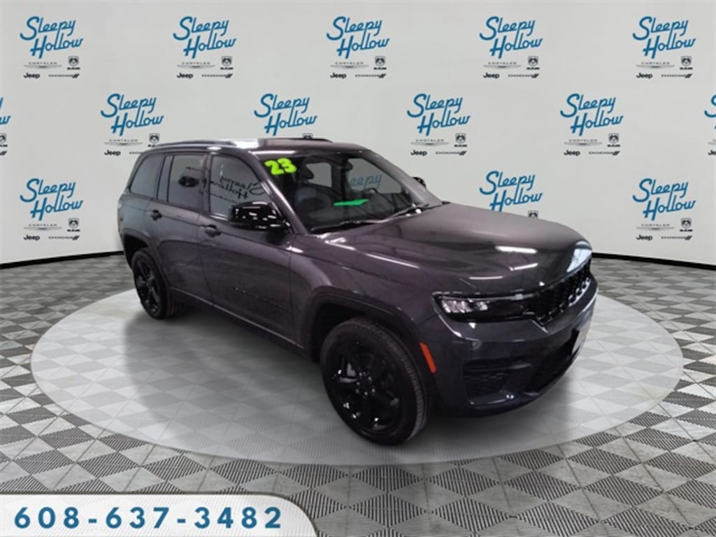 Baltic Gray Metallic Clearcoat 2023 Jeep Grand Cherokee Altitude X 4WD 8-Speed Automatic 3.6L V6 24V VVT 4WD, 115V Auxiliary Power Outlet, 3.45 Rear Axle Ratio, 4-Wheel Disc Brakes, 6 Speakers, ABS brakes, Air Conditioning, Alloy wheels, Altitude X, Anti-whiplash front head restraints, Automatic temperature control, Black Headliner, Brake assist, Bumpers: body-color, Capri Leatherette/Suede Seats, Cloth Seats, Compass, Delay-off headlights, Delete Laredo Badge, Driver door bin, Driver vanity mirror, Dual front impact airbags, Dual front side impact airbags, Electronic Stability Control, Emergency communication system, Four wheel independent suspension, Front anti-roll bar, Front Bucket Seats, Front Center Armrest w/Storage, Front dual zone A/C, Front License Plate Bracket, Front reading lights, Fully automatic headlights, Gloss Black Exterior Accents, Heated door mirrors, Heated Front Seats, Heated Steering Wheel, Illuminated entry, Knee airbag, Low tire pressure warning, Molded In Color Black/Gloss Black Roof Rails, Normal Duty Suspension, Occupant sensing airbag, Outside temperature display, Overhead airbag, Overhead console, Panic alarm, ParkView Rear Back-Up Camera, Passenger door bin, Passenger vanity mirror, Power door mirrors, Power driver seat, Power Liftgate, Power steering, Power Sunroof (DISC), Power windows, Quick Order Package 23M Altitude X, Radio data system, Radio: Uconnect 5 w/8.4" Display, Rain Sensitive Windshield Wipers, Rear anti-roll bar, Rear reading lights, Rear window defroster, Rear window wiper, Remote keyless entry, Remote Start System, Security system, Selectable Tire Fill Alert, Speed control, Speed-Sensitive Wipers, Split folding rear seat, Spoiler, Steering wheel mounted audio controls, Tachometer, Telescoping steering wheel, Tilt steering wheel, Traction control, Trip computer, Variably intermittent wipers, Voltmeter, Wheels: 17" x 6.5" Fully Painted Aluminum, Wheels: 18" x 8" Fully Painted Aluminum 1, Wheels: 20" x 8.5" Gloss Black Painted Aluminum, Wireless Charging Pad, 4WD.
