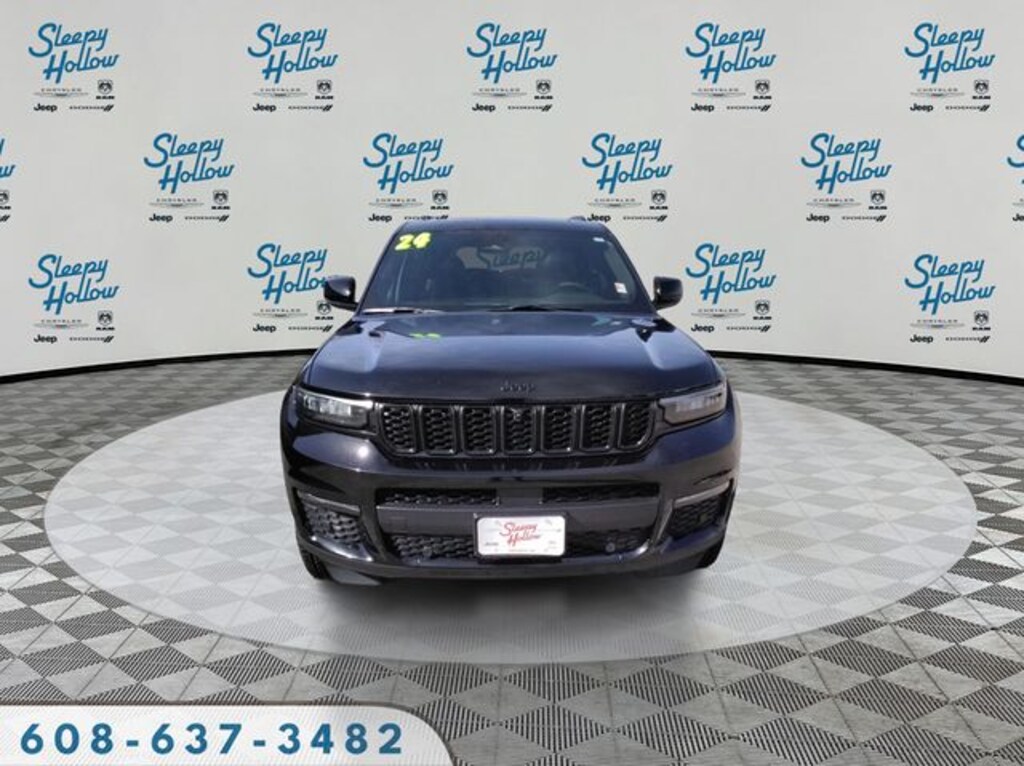 Diamond Black Crystal Pearlcoat 2024 Jeep Grand Cherokee L Limited 4WD 8-Speed Automatic 3.6L V6 24V VVT 2nd Row Manual Window Shades, 3.45 Rear Axle Ratio, 3rd row seats: split-bench, 4-Wheel Disc Brakes, 6 Speakers, ABS brakes, Active Noise Control System, Air Conditioning, Alloy wheels, AM/FM radio: SiriusXM with 360L, Anti-whiplash front head restraints, Audio memory, Auto High-beam Headlights, Auto-Dimming Exterior Driver Mirror, Automatic temperature control, Black Appearance Package, Brake assist, Bumpers: body-color, Capri Leatherette Seats, Capri Leatherette w/Axis II Seats, Compass, Delay-off headlights, Driver door bin, Driver vanity mirror, Dual front impact airbags, Dual front side impact airbags, Dual-Pane Panoramic Sunroof, Electronic Stability Control, Emergency communication system, Four wheel independent suspension, Front anti-roll bar, Front Bucket Seats, Front Center Armrest w/Storage, Front dual zone A/C, Front fog lights, Front reading lights, Fully automatic headlights, Garage door transmitter, Gloss Black Exterior Accents, Heated door mirrors, Heated front seats, Heated rear seats, Heated steering wheel, Illuminated entry, Integrated Off-Road Camera, Interior Rear Facing Camera, Intersection Collision Assist System, Knee airbag, Low tire pressure warning, Luxury Tech Group II, Manual Fold Seatbacks, Memory seat, Memory Steering Column, Navigation System, Normal Duty Suspension, Occupant sensing airbag, Outside temperature display, Overhead airbag, Overhead console, Panic alarm, ParkSense Front/Rear Park Assist w/Stop, ParkView Rear Back-Up Camera, Passenger door bin, Passenger vanity mirror, Passive Entry - Front/Rear Doors, Liftgate, Power door mirrors, Power driver seat, Power Liftgate, Power passenger seat, Power steering, Power Tilt/Telescope Steering Column, Power windows, Quick Order Package 23E, Radio data system, Radio: Uconnect 5 Nav w/10.1" Display, Rain Sensitive Windshield Wipers, Rear air conditioning, Rear anti-roll bar, Rear Back Up Camera Washer, Rear reading lights, Rear window defroster, Rear window wiper, Rearview Autodim Digital Display Mirror, Reclining 3rd row seat, Remote keyless entry, Security system, Speed control, Speed-Sensitive Wipers, Split folding rear seat, Spoiler, Steering wheel mounted audio controls, Surround View Camera System, Tachometer, Telescoping steering wheel, Tilt steering wheel, Traction control, Trip computer, Turn signal indicator mirrors, Variably intermittent wipers, Ventilated Front Seats, Voltmeter, Wheels: 18" x 8.0" Polished/Painted Aluminum, Wheels: 20" x 8.5" Gloss Black Painted Aluminum, Wireless Charging Pad.