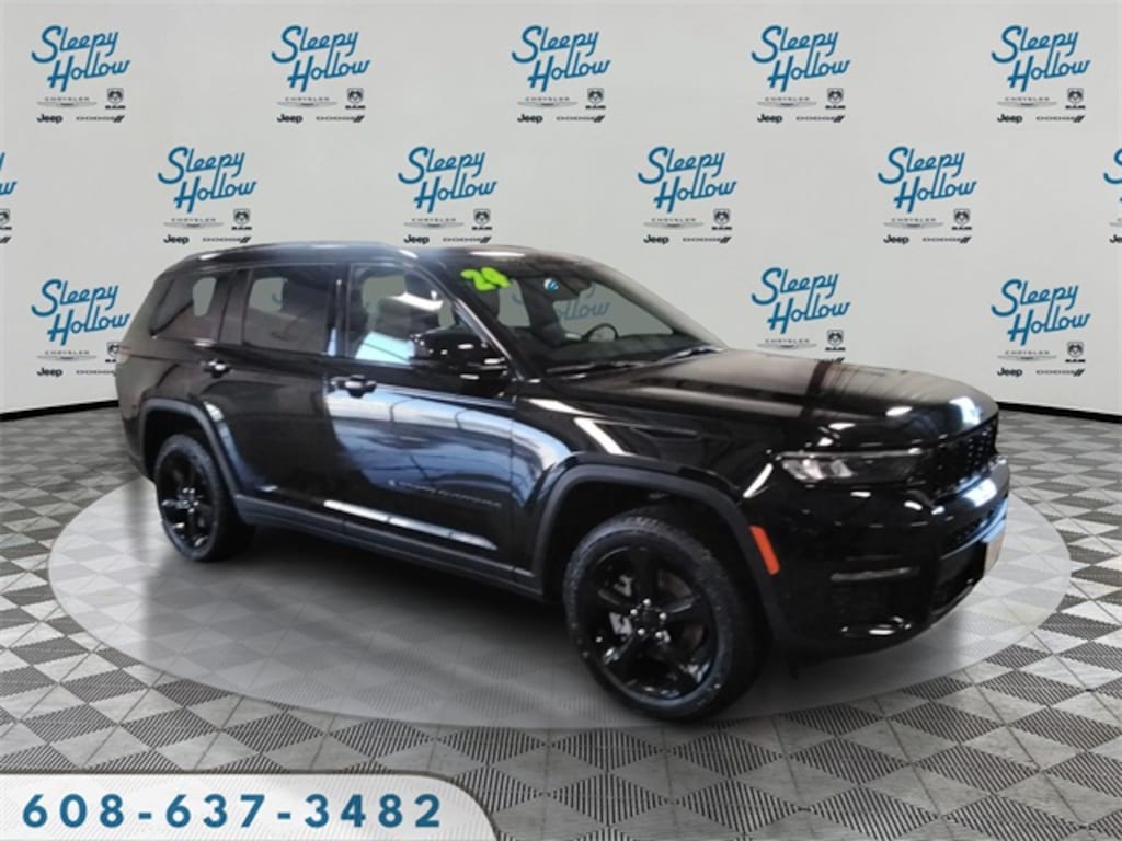 Diamond Black Crystal Pearlcoat 2024 Jeep Grand Cherokee L Limited 4WD 8-Speed Automatic 3.6L V6 24V VVT 2nd Row Manual Window Shades, 3.45 Rear Axle Ratio, 3rd row seats: split-bench, 4-Wheel Disc Brakes, 506 Watt Amplifier, 6 Speakers, 9 Amplified Speakers w/Subwoofer, ABS brakes, Active Noise Control System, Air Conditioning, Alloy wheels, AM/FM radio: SiriusXM with 360L, Anti-whiplash front head restraints, Audio memory, Auto High-beam Headlights, Auto-Dimming Exterior Driver Mirror, Automatic temperature control, Black Appearance Package, Brake assist, Bumpers: body-color, Capri Leatherette Seats, Capri Leatherette w/Axis II Seats, Compass, Delay-off headlights, Driver door bin, Driver vanity mirror, Dual front impact airbags, Dual front side impact airbags, Dual-Pane Panoramic Sunroof, Electronic Stability Control, Emergency communication system, Four wheel independent suspension, Front anti-roll bar, Front Bucket Seats, Front Center Armrest w/Storage, Front dual zone A/C, Front fog lights, Front reading lights, Fully automatic headlights, Garage door transmitter, Gloss Black Exterior Accents, Heated door mirrors, Heated front seats, Heated rear seats, Heated steering wheel, Illuminated entry, Integrated Off-Road Camera, Interior Rear Facing Camera, Intersection Collision Assist System, Knee airbag, Low tire pressure warning, Luxury Tech Group II, Manual Fold Seatbacks, Memory seat, Memory Steering Column, Navigation System, Normal Duty Suspension, Occupant sensing airbag, Outside temperature display, Overhead airbag, Overhead console, Panic alarm, ParkSense Front/Rear Park Assist w/Stop, ParkView Rear Back-Up Camera, Passenger door bin, Passenger vanity mirror, Passive Entry - Front/Rear Doors, Liftgate, Power door mirrors, Power driver seat, Power Liftgate, Power passenger seat, Power steering, Power Tilt/Telescope Steering Column, Power windows, Quick Order Package 23E, Radio data system, Radio: Uconnect 5 Nav w/10.1" Display, Rain Sensitive Windshield Wipers, Rear air conditioning, Rear anti-roll bar, Rear Back Up Camera Washer, Rear reading lights, Rear window defroster, Rear window wiper, Rearview Autodim Digital Display Mirror, Reclining 3rd row seat, Remote keyless entry, Security system, Speed control, Speed-Sensitive Wipers, Split folding rear seat, Spoiler, Steering wheel mounted audio controls, Surround View Camera System, Tachometer, Telescoping steering wheel, Tilt steering wheel, Traction control, Trip computer, Turn signal indicator mirrors, Variably intermittent wipers, Ventilated Front Seats, Voltmeter, Wheels: 18" x 8.0" Polished/Painted Aluminum, Wheels: 20" x 8.5" Gloss Black Painted Aluminum, Wireless Charging Pad.