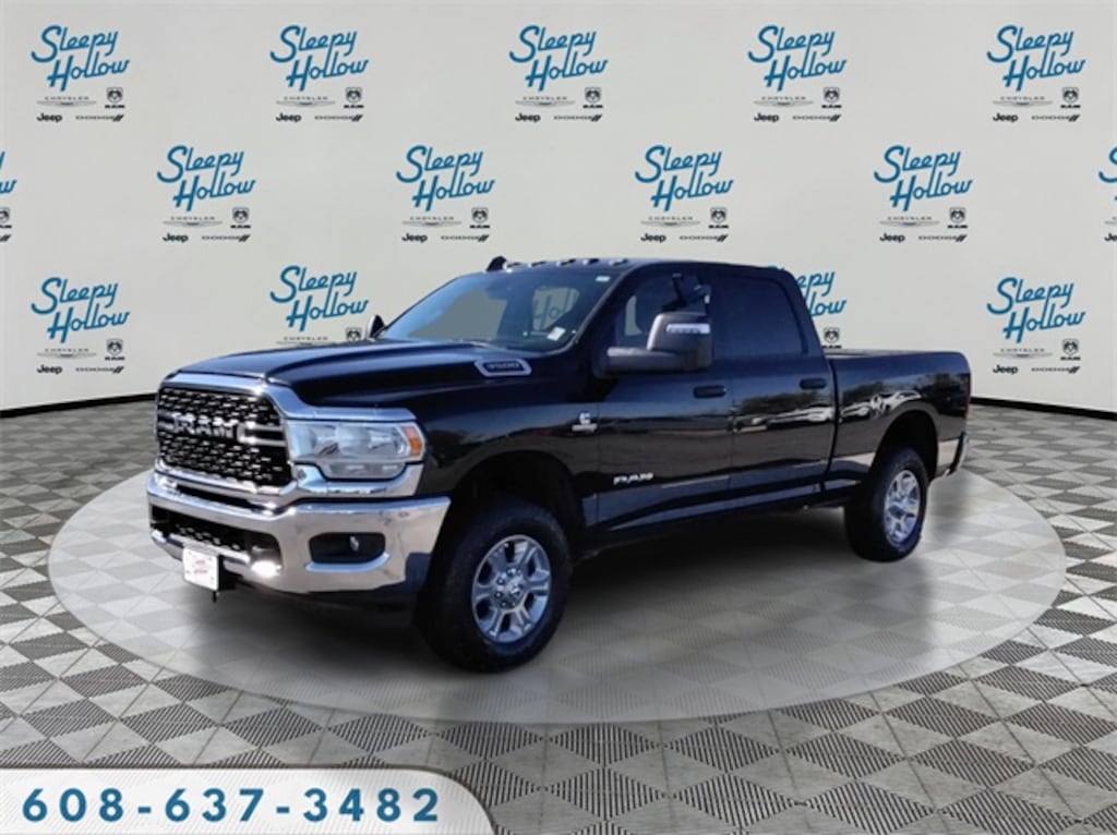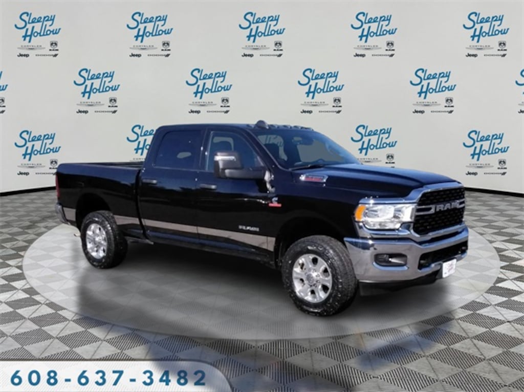 Diamond Black Crystal Pearlcoat 2023 Ram 3500 Big Horn 4WD 6-Speed Automatic Cummins 6.7L I6 Turbodiesel 2 Way Rear Headrest Seat, 220 Amp Alternator, 2nd Row In Floor Storage Bins, 3.73 Axle Ratio, 4 Way Front Headrests, 4-Wheel Disc Brakes, 40/20/40 Split Bench Seat, 4G LTE Wi-Fi Hot Spot, 6 Speakers, 8.4" Touchscreen Display, 9 Alpine Speakers w/Subwoofer, ABS brakes, Active Noise Control System, Air Conditioning, Apple CarPlay, Auto Power-Folding Mirrors, Auto-dimming Rear-View mirror, Auxiliary Switches Prep, Black Exterior Mirrors, Bluetooth Handsfree Phone & Audio, Brake assist, Bumpers: chrome, Center Hub, Clearance Lamps, Cloth 40/20/40 Bench Seat, Cold Weather Group, Compass, Connectivity - US/Canada, Dash Pass Thru Wire Circuits, Delay-off headlights, Driver door bin, Dual Alternators Rated At 440 Amps, Dual front impact airbags, Dual front side impact airbags, Dual Glove Boxes, Electronic Stability Control, Electronically Controlled Throttle, Emergency communication system: SiriusXM Guardian, Engine Block Heater, Exterior Mirrors Courtesy Lamps, Exterior Mirrors w/Heating Element, Exterior Mirrors w/Supplemental Signals, Foam Bottle Insert (Door Trim Panel), Footwell Courtesy Lamp, For Details Visit DriveUconnect.com, For More Info, Call 800-643-2112, Forward & Reverse Utility Lights, Front anti-roll bar, Front Armrest w/Cupholders, Front Center Armrest w/Storage, Front Center Seat Cushion Storage, Front Fog Lamps, Front License Plate Bracket, Front reading lights, Front Seat Back Map Pockets, Fully automatic headlights, Global Telematics Box Module (TBM), Glove Box Lamp, Google Android Auto, GPS Antenna Input, Heated door mirrors, I/P Mounted Auxiliary Switches, Illuminated entry, Integrated Center Stack Radio, Integrated Voice Command w/Bluetooth, Leather Wrapped Steering Wheel, Level 1 Equipment Group, Locking Lower Glove Box, Low tire pressure warning, Manual Adjust 4-Way Driver Seat, Manual Adjust 4-Way Front Passenger Seat, Mirror Running Lights, MOPAR Spray In Bedliner, MOPAR Winter Front Grille Cover, Occupant sensing airbag, Outside temperature display, Overhead airbag, Overhead console, Panic alarm, ParkView Rear Back-Up Camera, Passenger door bin, Passenger vanity mirror, Power 2-Way Driver Lumbar Adjust, Power Adjust 8-Way Driver Seat, Power Adjust Mirrors, Power door mirrors, Power Heated Fold Telescopic Mirrors, Power steering, Power Telescoping Mirrors, Power windows, Power-Adjustable Convex Aux Mirrors, Premium Cloth 40/20/40 Bench Seat, Quick Order Package 2HZ Big Horn, Radio data system, Radio: Uconnect 3 w/5" Display, Radio: Uconnect 5 w/8.4" Display, Rear 60/40 Folding Seat, Rear Dome w/On/Off Switch Lamp, Rear Folding Seat, Rear seat center armrest, Rear step bumper, Remote keyless entry, Selectable Tire Fill Alert, SiriusXM Radio Service, SiriusXM Satellite Radio, Snow Chief Group, Speed control, Steering Wheel Mounted Audio Controls, Storage Tray, Tachometer, Tilt steering wheel, Tip Start, Traction control, Trip computer, Turn signal indicator mirrors, Variably intermittent wipers, Voltmeter, Wheels: 18" x 8.0" Polished Aluminum (DISC), Wheels: 18" x 8.0" Steel Chrome Clad.