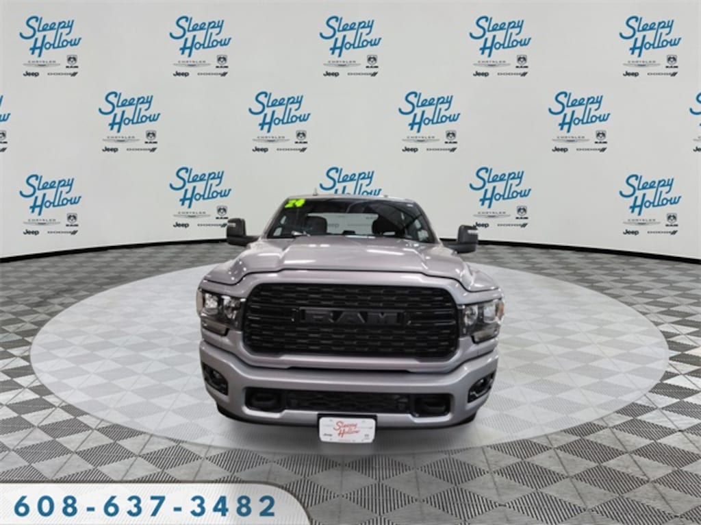 Billet Silver Metallic Clearcoat 2024 Ram 2500 Big Horn 4WD 8-Speed Automatic 6.4L V8 12" Touchscreen Display, 2 Way Rear Headrest Seat, 2nd Row In Floor Storage Bins, 3.73 Axle Ratio, 4 Way Front Headrests, 4-Wheel Disc Brakes, 40/20/40 Split Bench Seat, 4G LTE Wi-Fi Hot Spot, 6 Speakers, 8.4" Touchscreen Display, 9 Alpine Speakers w/Subwoofer, ABS brakes, Active Noise Control System, Air Conditioning, Air Conditioning ATC w/Dual Zone Control, Alexa Built-In, All R1 High Radios, All Radio Equipped Vehicles, Apple CarPlay, Auto Power-Folding Mirrors, Bed Utility Group, Big Horn IP Badge, Black Exterior Mirrors, Black Exterior Truck Badging, Black Headlamp Bezels, Black Interior Accents, Black Ram Head Tailgate Badge, Black Tail Lamp Bezels, Black Wheel Center Hub, Bluetooth Handsfree Phone & Audio, Body Color Door Handles, Body Color Grille Surround, Brake assist, Bumpers: chrome, Center Hub, Center Stack Storage Drawer, Cloth 40/20/40 Bench Seat, Compass, Connected Travel & Traffic Services, Connectivity - US/Canada, Delay-off headlights, Disassociated Touchscreen Display, Driver door bin, Dual front impact airbags, Dual front side impact airbags, Dual Glove Boxes, Electronic Stability Control, Electronically Controlled Throttle, Emergency communication system: SiriusXM Guardian, Exterior Mirrors Courtesy Lamps, Exterior Mirrors w/Heating Element, Exterior Mirrors w/Supplemental Signals, Foam Bottle Insert (Door Trim Panel), Footwell Courtesy Lamp, For Details, Visit DriveUconnect.com, For More Info, Call 800-643-2112, Forward & Reverse Utility Lights, Front anti-roll bar, Front Armrest w/Cupholders, Front Center Armrest w/Storage, Front Center Seat Cushion Storage, Front Fog Lamps, Front License Plate Bracket, Front reading lights, Front Seat Back Map Pockets, Fully automatic headlights, Global Telematics Box Module (TBM), Gloss Black Nostrils/MIC Black Grille, Glove Box Lamp, Google Android Auto, GPS Antenna Input, GPS Navigation, HD Radio, Heated door mirrors, Illuminated entry, Integrated Center Stack Radio, Integrated Voice Command w/Bluetooth, Leather Wrapped Steering Wheel, LED Bed Lighting, Level 1 Equipment Group, Locking Lower Glove Box, Low tire pressure warning, Manual Adjust 4-Way Driver Seat, Manual Adjust 4-Way Front Passenger Seat, Manufacturer's Statement of Origin, Mirror Running Lights, MOPAR Deployable Bed Step, MOPAR Spray In Bedliner, Night Edition, Occupant sensing airbag, Off-Road Information Pages, Outside temperature display, Overhead airbag, Overhead console, Painted Flat Cab-Length Side Steps, Painted Front Bumper, Painted Rear Bumper, Panic alarm, ParkSense Front/Rear Park Assist System, ParkView Rear Back-Up Camera, Passenger door bin, Passenger vanity mirror, Power 2-Way Driver Lumbar Adjust, Power Adjust 8-Way Driver Seat, Power Adjust Mirrors, Power Adjustable Convex Aux Mirrors, Power door mirrors, Power Heated Fold Telescope Mirrors, Power steering, Power Telescoping Mirrors, Power windows, Premium Cloth 40/20/40 Bench Seat (DISC), Protection Group, Quick Order Package 2GZ Big Horn, Radio data system, Radio: Uconnect 3 w/5" Display, Radio: Uconnect 5 Nav w/12.0" Display, Radio: Uconnect 5 W w/8.4" Display, Rear 60/40 Folding Seat, Rear anti-roll bar, Rear Dome w/On/Off Switch Lamp, Rear Folding Seat, Rear seat center armrest, Rear step bumper, Remote keyless entry, Remote USB Port - Charge Only, Selectable Tire Fill Alert, SiriusXM Radio Service, SiriusXM Satellite Radio, SiriusXM w/360L, Speed control, Steering Wheel Mounted Audio Controls, Storage Tray, Tachometer, Tilt steering wheel, Tip Start, Tow Hooks, Traction control, Trailer Tow Pages, Trip computer, Turn signal indicator mirrors, Variably intermittent wipers, Voltmeter, Wheels: 18" x 8.0" Polished Aluminum, Wheels: 18" x 8.0" Steel Chrome Clad, Wheels: 20" x 8.0" Black Painted Aluminum.