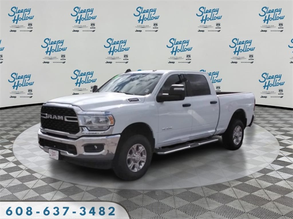 Bright White Clearcoat 2024 Ram 2500 Big Horn 4WD 8-Speed Automatic 6.4L V8 2 Way Rear Headrest Seat, 2nd Row In Floor Storage Bins, 3.73 Axle Ratio, 4 Way Front Headrests, 4-Wheel Disc Brakes, 40/20/40 Split Bench Seat, 4G LTE Wi-Fi Hot Spot, 6 Speakers, 8.4" Touchscreen Display, ABS brakes, Active Noise Control System, Air Conditioning, Anti-Spin Differential Rear Axle, Apple CarPlay, Auto Power-Folding Mirrors, Bed Utility Group, Big Horn IP Badge, Black Exterior Mirrors, Bluetooth Handsfree Phone & Audio, Brake assist, Bumpers: chrome, Center Hub, Center Stack Storage Drawer, Chrome Flat Cab-Length Side Steps, Cloth 40/20/40 Bench Seat, Compass, Connectivity - US/Canada, Delay-off headlights, Driver door bin, Dual front impact airbags, Dual front side impact airbags, Dual Glove Boxes, Electronic Stability Control, Electronically Controlled Throttle, Emergency communication system: SiriusXM Guardian, Exterior Mirrors Courtesy Lamps, Exterior Mirrors w/Heating Element, Exterior Mirrors w/Supplemental Signals, Foam Bottle Insert (Door Trim Panel), Footwell Courtesy Lamp, For Details, Visit DriveUconnect.com, For More Info, Call 800-643-2112, Forward & Reverse Utility Lights, Front anti-roll bar, Front Armrest w/Cupholders, Front Center Armrest w/Storage, Front Center Seat Cushion Storage, Front Fog Lamps, Front License Plate Bracket, Front reading lights, Front Seat Back Map Pockets, Fully automatic headlights, Global Telematics Box Module (TBM), Glove Box Lamp, Google Android Auto, GPS Antenna Input, Heated door mirrors, Illuminated entry, Integrated Center Stack Radio, Integrated Voice Command w/Bluetooth, Leather Wrapped Steering Wheel, LED Bed Lighting, Level 1 Equipment Group, Locking Lower Glove Box, Low tire pressure warning, Manual Adjust 4-Way Driver Seat, Manual Adjust 4-Way Front Passenger Seat, Manufacturer's Statement of Origin, Mirror Running Lights, MOPAR Deployable Bed Step, MOPAR Spray In Bedliner, Occupant sensing airbag, Outside temperature display, Overhead airbag, Overhead console, Panic alarm, ParkView Rear Back-Up Camera, Passenger door bin, Passenger vanity mirror, Power 2-Way Driver Lumbar Adjust, Power Adjust 8-Way Driver Seat, Power Adjust Mirrors, Power Adjustable Convex Aux Mirrors, Power door mirrors, Power Heated Fold Telescope Mirrors, Power steering, Power Telescoping Mirrors, Power windows, Premium Cloth 40/20/40 Bench Seat (DISC), Protection Group, Quick Order Package 2GZ Big Horn, Radio data system, Radio: Uconnect 3 w/5" Display, Radio: Uconnect 5 W w/8.4" Display, Rear 60/40 Folding Seat, Rear anti-roll bar, Rear Dome w/On/Off Switch Lamp, Rear Folding Seat, Rear seat center armrest, Rear step bumper, Remote keyless entry, Remote USB Port - Charge Only, Selectable Tire Fill Alert, SiriusXM Radio Service, SiriusXM Satellite Radio, Speed control, Steering Wheel Mounted Audio Controls, Storage Tray, Tachometer, Tilt steering wheel, Tip Start, Tow Hooks, Traction control, Trip computer, Turn signal indicator mirrors, Variably intermittent wipers, Voltmeter, Wheels: 18" x 8.0" Polished Aluminum, Wheels: 18" x 8.0" Steel Chrome Clad.