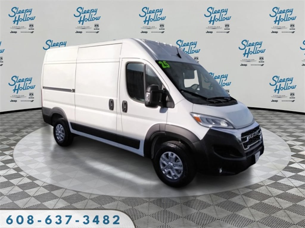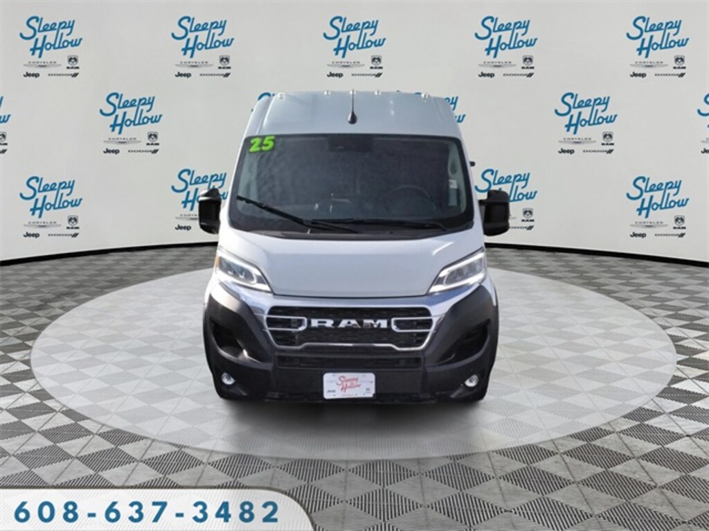 Bright White Clearcoat 2025 Ram ProMaster 2500 High Roof FWD 9-Speed 948TE Automatic 3.6L V6 24V VVT 100 Amp Battery, 115V Auxiliary Power Outlet, 12V Rear Auxiliary Power Outlet, 220 Amp Alternator, 4 Speakers, 4-Wheel Disc Brakes, 4.08 Axle Ratio, 4G LTE Wi-Fi Hotspot, 6-Way Manual Adjust Driver Seat, 6-Way Manual Adjust Front Passenger Seat, 70 mph Maximum Speed, ABS brakes, Adaptive Cruise Control w/Stop & Go, Air Conditioning, AM/FM radio: SiriusXM, Ambient LED Interior Lighting, Apple CarPlay, Apple CarPlay/Android Auto, Auto High Beam Headlamp Control, Automatic Headlamps, Black/Gray Seats, Blind Spot & Cross Path Detection, Bodyside moldings, Brake assist, Chrome Front Grille, Cloth Bucket Seats, Cluster 7.0" TFT Color Display, Connected Travel & Traffic Services, Connectivity - US/Canada, Cowl Aesthetic Cover, Digital Rearview Mirror w/Autodim, Driver door bin, Driver Seat Armrest, Driver's Seat Mounted Armrest, Electronic Stability Control, Exterior Mirrors w/Heating Element, Exterior Mirrors w/Supplemental Signals, For Details, Visit DriveUconnect.com, For More Info, Call 800-643-2112, Front anti-roll bar, Front Bucket Seats, Front LED Fog Lamps, Front License Plate Bracket, Front reading lights, Front wheel independent suspension, Global Telematics Box Module (TBM), Google Android Auto, GPS Antenna Input, GPS Navigation, HD Radio, Heavy Duty Suspension, Illuminated entry, Instrument Panel Bright Bezels, Integrated Voice Command w/Bluetooth, Intelligent Speed Assist (ISA), Lane Departure Warning Plus, LED Daytime Running Headlamps, LED Reflector Headlamps, Low tire pressure warning, Manual 2-Way Driver Lumbar Adjust, Manual 2-Way Passenger Lumbar Adjust, Manufacturer's Statement of Origin, Outside temperature display, Overhead airbag, Overhead console, ParkSense Front/Rear Park Assist System, ParkView Rear Back-Up Camera, Passenger Bucket Seat, Passenger door bin, Passenger Seat Armrest, Passive Entry, Power Adjust Mirrors, Power Folding/Heated Mirrors, Power steering, Power windows, Power-Adjustable Convex Aux Mirrors, Quick Order Package 22H SLT+, Radio: Uconnect 5 Nav w/10.1" Display, Radio: Uconnect 5 w/7" Display, Rain Sensitive Windshield Wipers, Rear Cargo LED Lamp, Rear Heater - A/C Prep Package, Remote keyless entry, Remote Start System, Security Alarm, SiriusXM Radio Service, SiriusXM w/360L, Steering wheel mounted audio controls, Tachometer, Telescoping steering wheel, Traction control, Traffic Sign Information, Trip computer, Turn signal indicator mirrors, Variably intermittent wipers, Wheel Center Cap, Wheels: 16" x 6.0" Aluminum Painted Silver, Wheels: 16" x 6.0" Steel, Wireless Charging Pad.